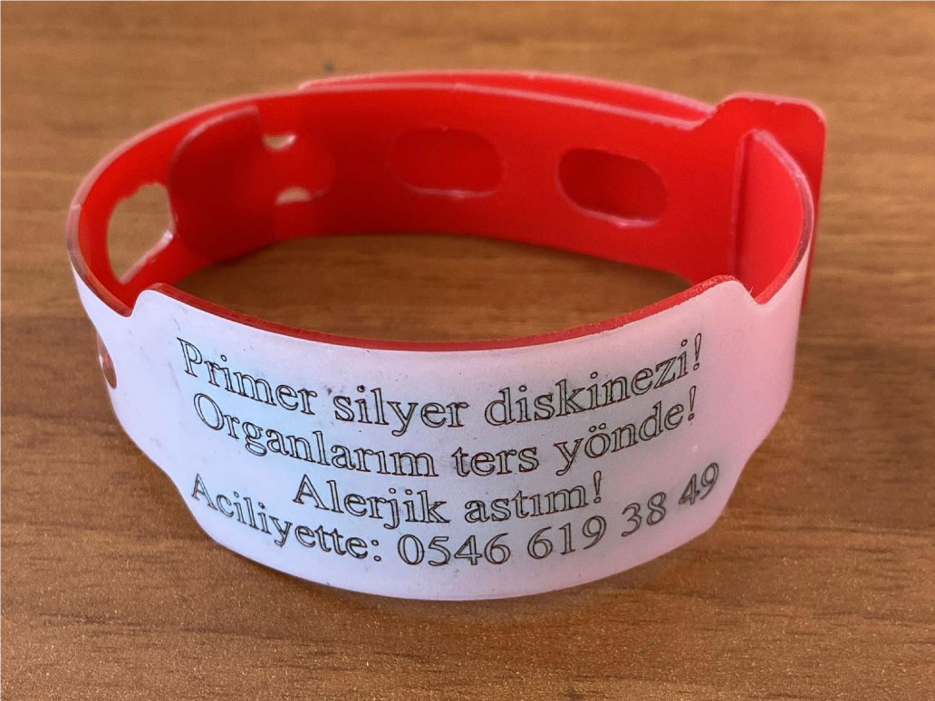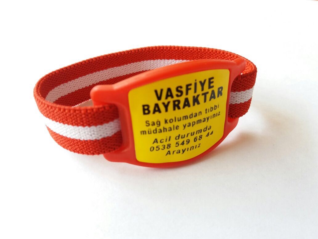 Dr veya kendinizin belirttiği ikaz bilgisi yazılı bileklik ani/acil durumda size doğru müdehale edilmesini sağlar.
